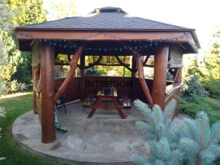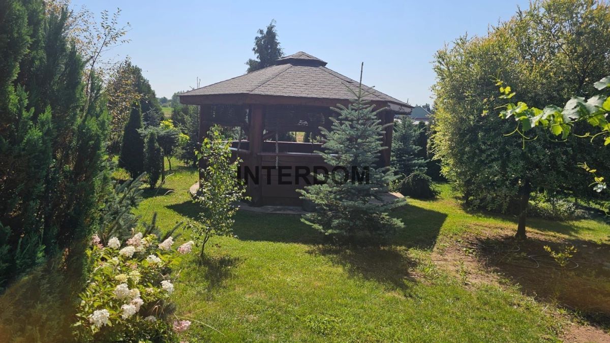 Powierzchnia działki wynosi ok. 4600 m2, w kształcie prostokąta, w całości ogrodzona siatką. Działka ładnie zagospodarowana zielenią, dodatkowo zabudowana piękną, dużą drewnianą altaną.